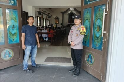 OKU Timur – Suarapagi.my.id Polsek Buay Madang Timur, Polres OKU Timur, melaksanakan pengamanan ibadah Minggu Kasih Tahun 2026 di Gereja Trinitas Bangun Sari, Kecamatan Buay Madang Timur, Kabupaten OK...