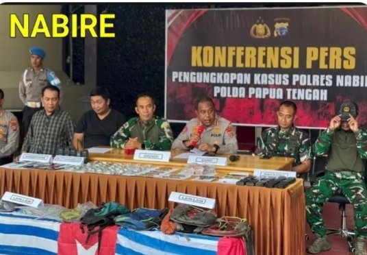 Nabire, Suarapagi.my.id – Aparat gabungan TNI-Polri menggelar konferensi pers di Polres Nabire, Senin (2/3/2026), terkait perkembangan penegakan hukum terhadap DPO kelompok kriminal bersenjata (KKB) di Kabupaten Nabire.
