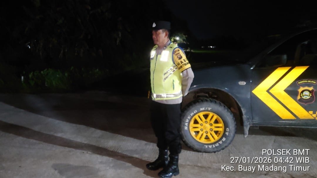 Oku Timur,Suarapagi.my.id – Dalam upaya menjaga stabilitas keamanan dan ketertiban masyarakat (kamtibmas), jajaran Polsek Buay Madang Timur, Polres OKU Timur, melaksanakan Kegiatan Rutin Yang Ditingkatkan (KRYD) yang dirangkaikan dengan patroli pagi pada Selasa, 27 Januari 2026. Kegiatan ini dilaksanakan sejak dini hari, mulai pukul 02.00 WIB hingga 05.00 WIB, menyasar wilayah rawan gangguan kamtibmas.