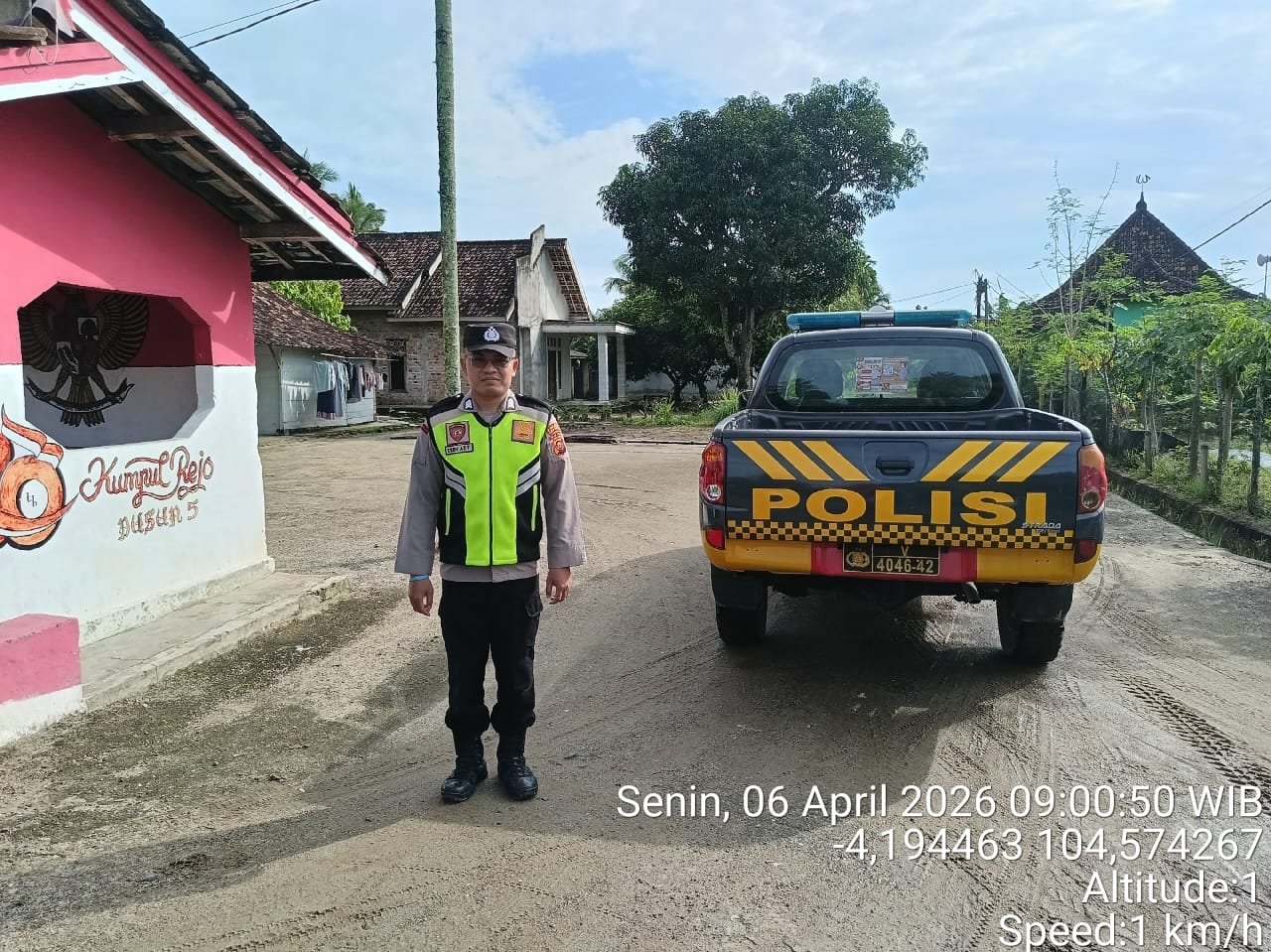 Kegiatan yang dimulai pukul 09.00 WIB hingga 11.00 WIB ini dipusatkan di Jalan Desa Kumpul Rejo, Kecamatan Buay Madang Timur, Kabupaten OKU Timur. Patroli melibatkan empat personel, yakni AIPTU M. Ali Amin, BRIPKA Nur Holik, BRIGADIR Tedy Heryadi, S.E., dan BRIGADIR Rusendi Ardianto.