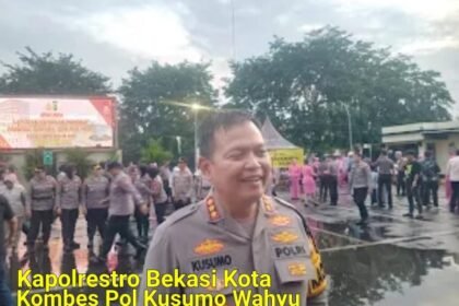 Bekasi Kota, Suarapagi.my.id – Kapolres Metro Bekasi Kota, Kombes Pol Kusumo Wahyu Bintoro, SH, SIK, MH, memimpin langsung Upacara Kenaikan Pangkat Perwira, Bintara, dan Pegawai Negeri Sipil (PNS) Pol...