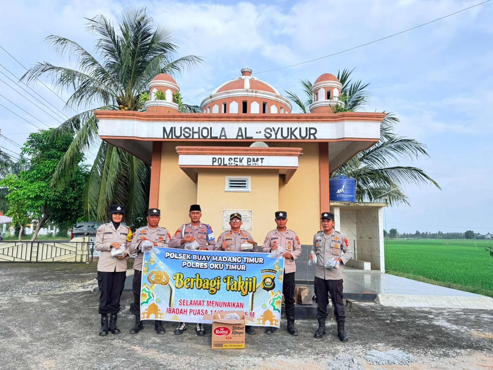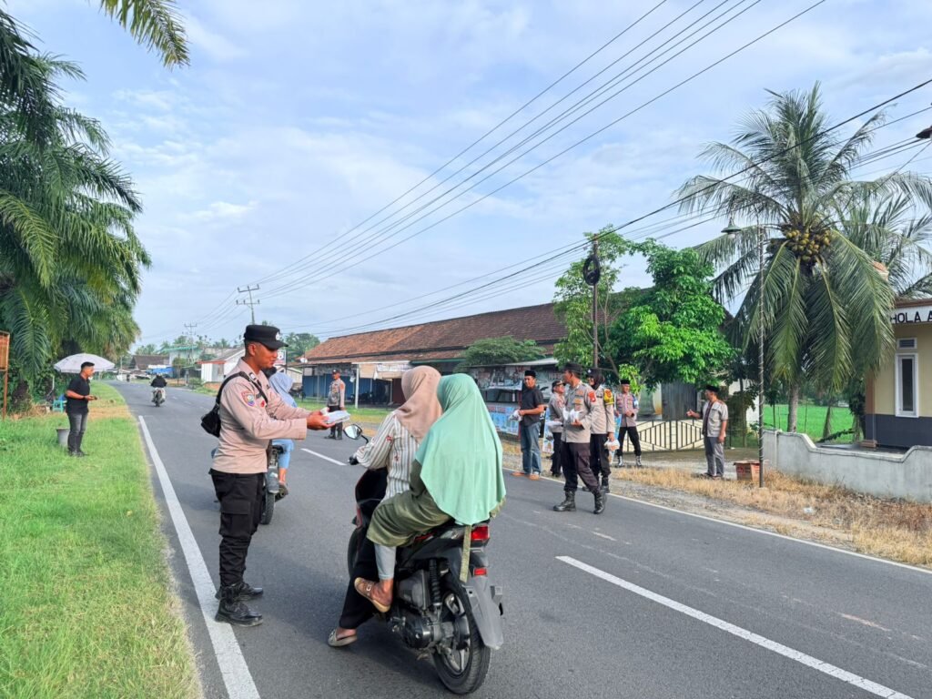 OKU Timur – Suarapagi.my.id – Dalam rangka meningkatkan kepedulian sosial di bulan suci Ramadan 1447 Hijriah, jajaran Polsek Buay Madang Timur melaksanakan kegiatan pembagian takjil kepada masyarakat dan pengendara yang melintas di wilayah Kecamatan Buay Madang Timur, Kabupaten OKU Timur, Jumat (13/3/2026).